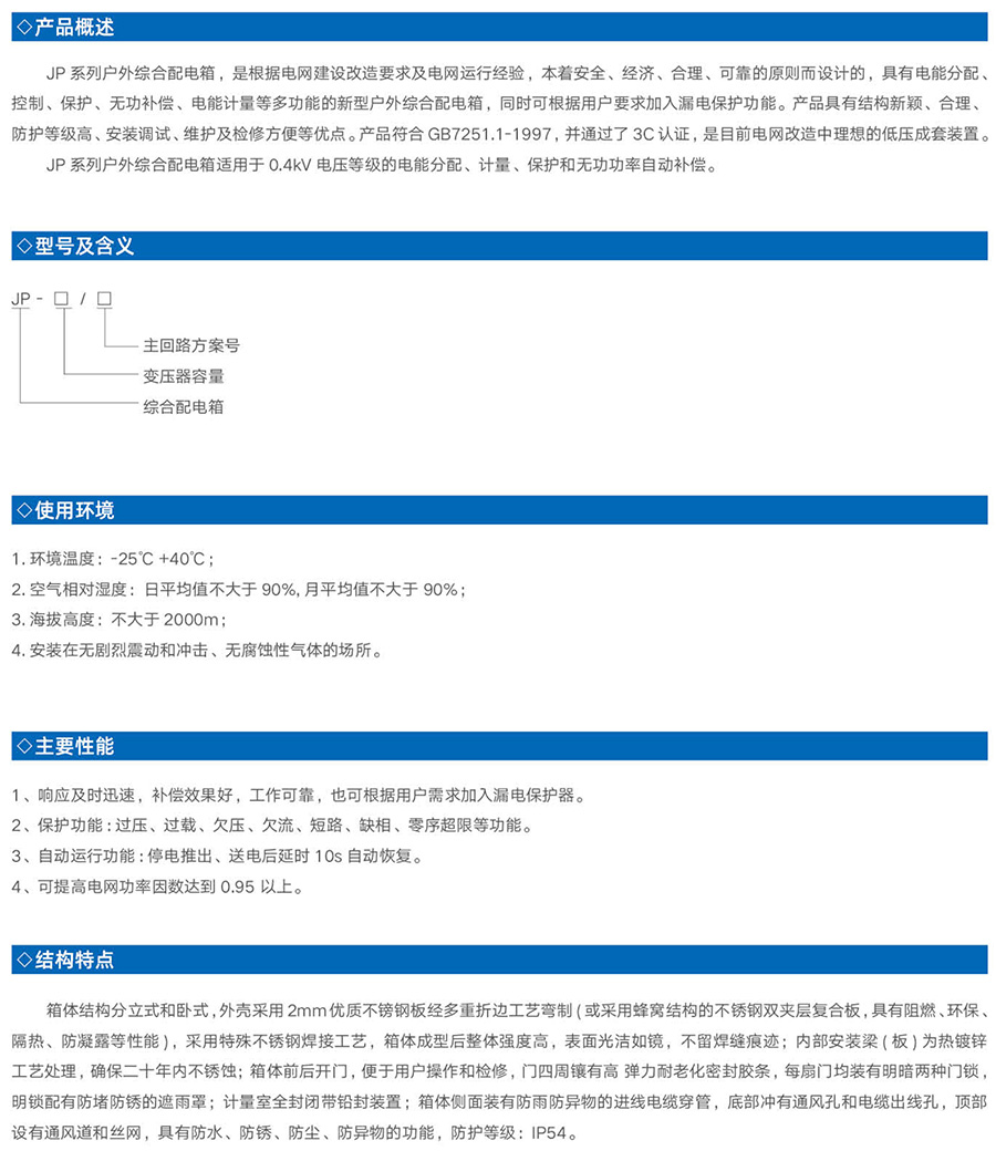 JP系列戶外綜合配電箱